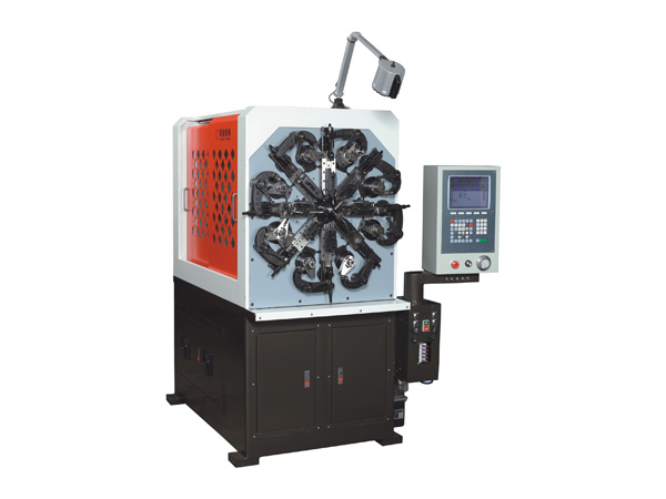 Our company's KCT-0520WZ 5 Axis CNC versatile spring rotating forming machine adopts Taiwan CNC control system, using the Japanese SANYO servo motor and high precision bearings, the models of a total of five axes, respectively, camshaft, feeder axis, rotary mandrel, spool roll and crankshaft system through CNC code, respectively. The feeding line and cam drive system of synchronous control, can achieve 24 hours of precise operation. In addition, due to the high precision servo motor and computer control of the spring machine, we can easily produce the spring products with precise size and complicated angle by combining the servo rotation axis and the crimping shaft.