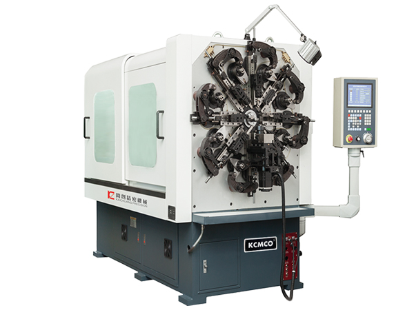 開創KCT-0535WZ五軸數控萬能彈簧轉線成形機采用臺灣(益圖)控制系統、引用日本三洋伺服電機和高精密軸承等構成,該機型一共有五軸,分別為凸輪軸、送線軸、轉芯軸、轉線軸和卷曲軸,系統透過CNC程式碼,分別對送線與凸輪傳動系統做同步控制,可達到24小時精確運轉。此外,由于我司彈簧機設備均采用高精度的伺服馬達及電腦控制,因此結合伺服轉線一軸和卷曲一軸,即可輕松地生產尺寸精密且角度復雜的彈簧產品。